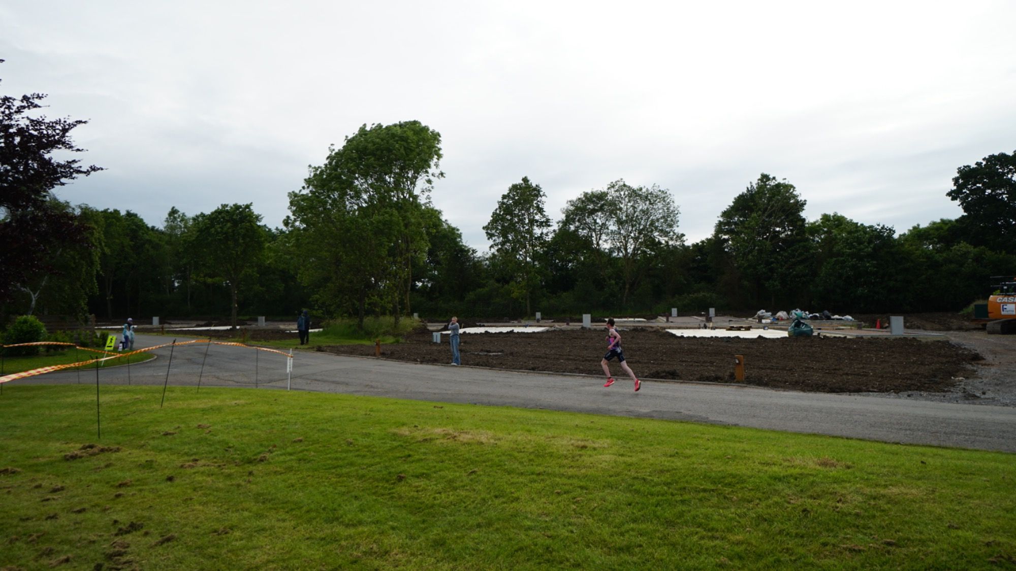 Run out of transition, follow the signs and marshals and you will run your required number of laps of a 1 mile course around the lodges and lakes, picking up a band for each lap you complete.