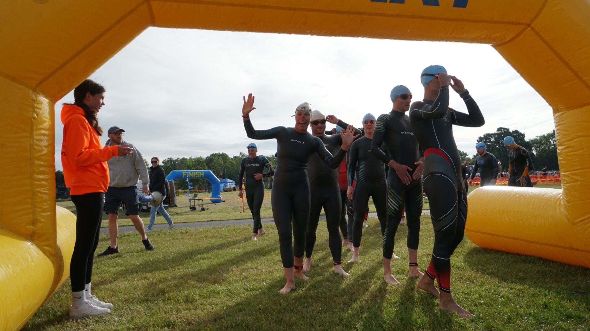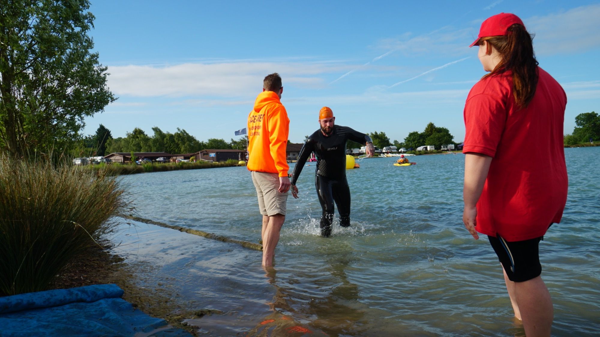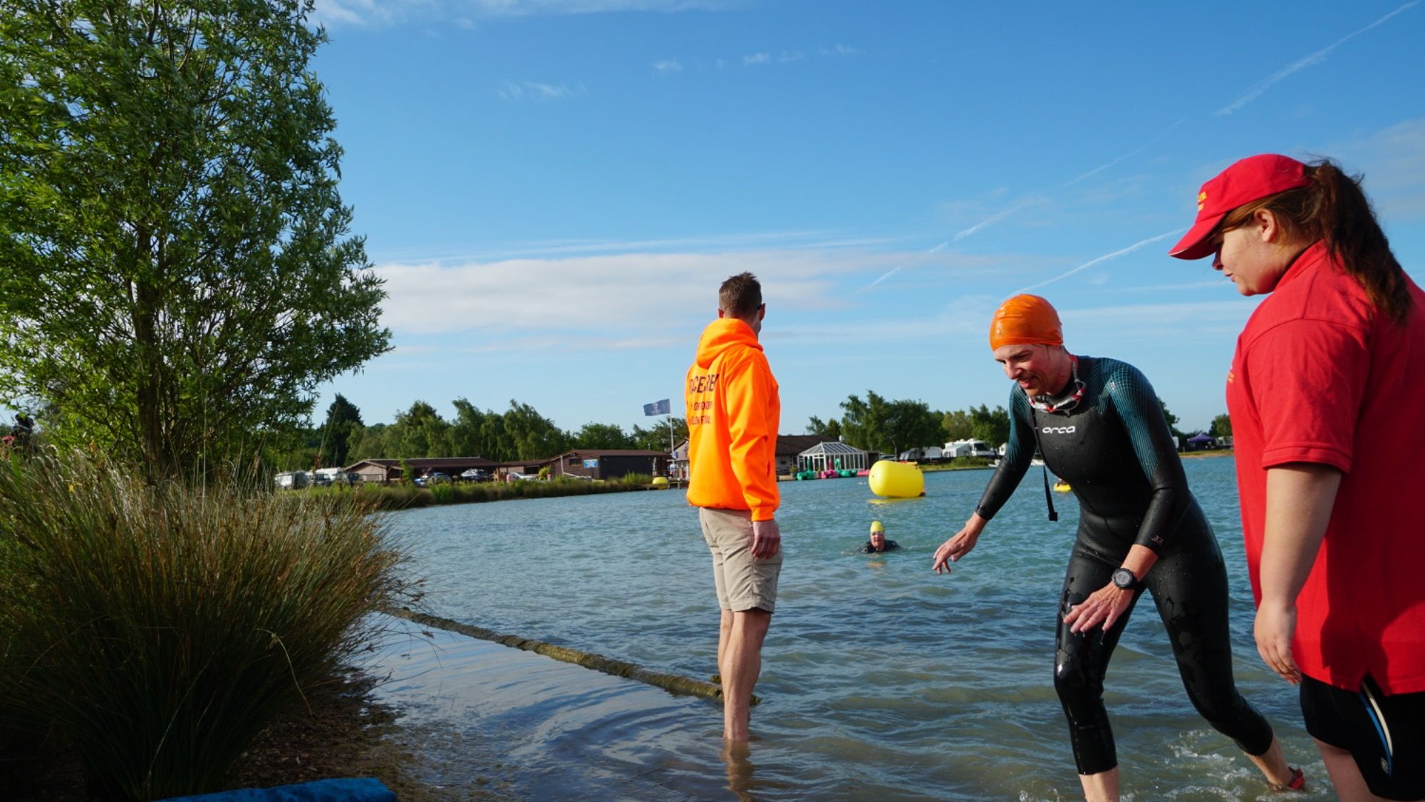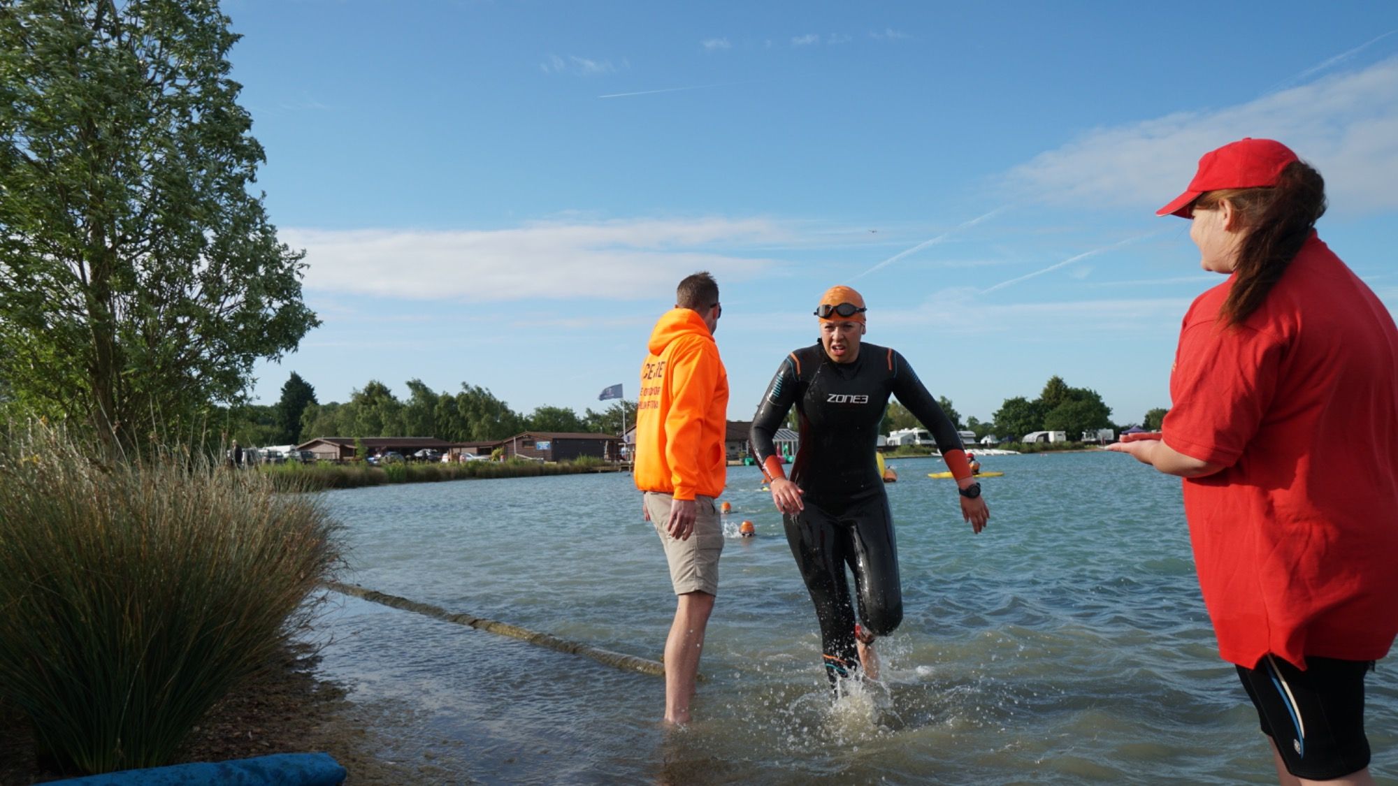 You will enter the water before the start at the marked entry/exit point and be counted in. You will be given a 5-minute time check before the race start, and a 1-minute check before the swim start. You will exit at the marked exit area once you have completed your lap(s) and follow the route to transition.